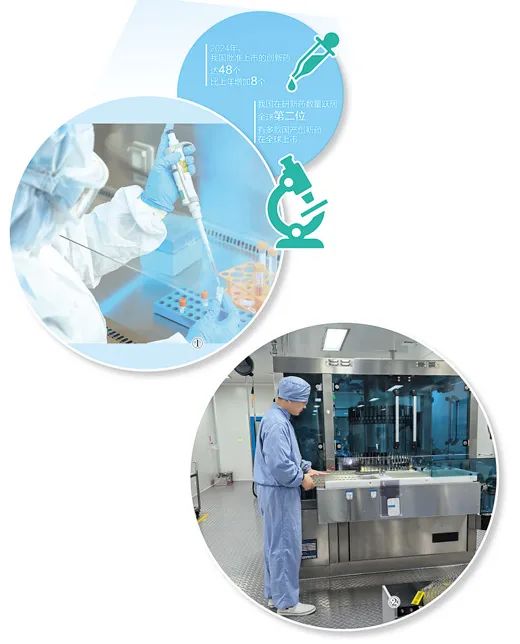 国家药监局数据显示,2024年,我国批准上市的创新药达48个,比上年增加8个。我国在研新药数量跃居全球第二位,有多款国产创新药在全球上市。